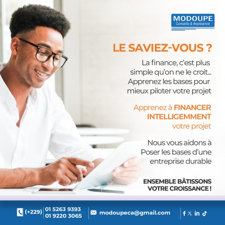 L’histoire de Modoupe Conseils & Assistance est ancrée dans une observation fondamentale du monde entrepreneurial africain : de nombreuses entreprises ambitieuses se heurtent à des défis de structuration durable. Le manque de compétences spécialisées, une gestion parfois imprécise et l’absence d’une stratégie claire sont des obstacles fréquents, surtout dans notre contexte local. Face à ce constat, Modoupe Conseils & Assistance a vu le jour, non pas comme un simple prestataire, mais comme un véritable allié. Nous sommes plus qu’un cabinet de conseil ; nous sommes des experts engagés à vos côtés pour transformer vos défis en opportunités de croissance concrète. Notre équipe pluridisciplinaire expérimentée bénéficie de plus de 20 ans d’expertise cumulée, ce qui nous permet d’avoir une compréhension approfondie des enjeux liés à la croissance de l’entreprise